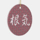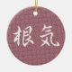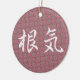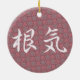 Em um fundo da flor da ameixa, o kanji japonês para a "perseverança" 'é escrito no roteiro de fluxo do estilo do gyosho. A perseverança é "konki" no japonês, e a flor da ameixa é um símbolo tradicional da perseverança, começando frequentemente a florescer quando houver ainda neve na terra.