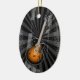Os feixes pretos e cinzentos estouraram em um fundo preto rico atrás de uma imagem de uma guitarra. Você pode adicionar seu próprio texto ou deixá-lo como é. Grande ornamento para algum guitarrista. Disponível em produtos de harmonização.