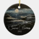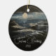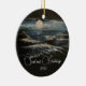 Pintado céu noturno de lua azul sobre a água. Uma renderização de abstrato de uma noite de terror na praia. Azul da meia-noite e negros iluminados pela lua de cheio. Uma cena romântica incrível.