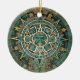 Ornamento da moeda do medalhão, calendário asteca antigo, símbolo histórico no ouro, cerceta, turquesa e preto. Design bonito. O símbolo do calendário do nativo americano projeta estilo cinzelado ou gravado e pintado, redondo da moeda. Denominação moderna lustrosa preta. Verifique para fora o beta pulso de disparo do aquário, ímãs e as sacolas estão igualmente disponíveis.