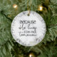 Uma tipografia de script de Páscoa retrógrada com fundo de mármore e uma coroa floral de cinza com as palavras: Porque Ele Mora. Adicione a sua própria mensagem personalizada no lado da revogação para personalizar.