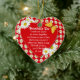 Um ornamento do coração com as margaridas brancas brilhantes, as borboletas vermelhas do coração, do bule e do ouro com um pensamento de você verse na parte dianteira e a receita para o chá da amizade na parte traseira é um presente delicioso e significativo. Todo o texto pode ser personalizado no modelo fornecido. Se você tem sua própria receita especial para o chá da amizade, apenas suprima do original e adicione seus próprios. O bule, os copos e o frasco de harmonização do armazenamento do chá com este design da margarida estão disponíveis em minha loja para fazer o presente perfeito para seu amigo do amante do chá ou amado. A arte e o design originais pelo Anura projetam o estúdio
