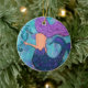 Ornamento perfeito do feriado para o amante da sereia e do cavalo marinho em sua vida. A parte anterior mostra que uma natação lunática da sereia com sua parte traseira do cavalo marinho do animal de estimação pode ser personalizada com um nome e uma data.