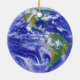 Belo ornamento redondo, com uma fotografia espacial da Terra. Excelente na sua árvore de Natal ou como outros usos decorativos em volta da casa, como uma ventoinha ou pendurada na parede. Faz um presente excelente para qualquer um que ama arte.