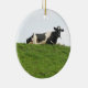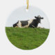Ornamento da vaca. Uma vaca de Holstein do Frisian que relaxa e que olha com uma cara curiosa e engraçada em você! Este ornamento da vaca é inteiramente customizável! Adicione & personalize com seus textos e imagens! Um grande presente da vaca para o coletor dos artigos da vaca e o amante dos animais da fazenda!
