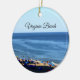 Este ornamento de porcelana redondo apresenta uma imagem de frente de praia de Virginia Beach, Virginia. O local é escrito na parte superior da imagem; no verso, sobre um fundo azul claro está um detalhe divertido - as coordenadas geográficas. Entre em contato comigo através do Zazzle se você tiver perguntas sobre este ornamento ou quiser que ele seja personalizado. Estou feliz em ajudar e personalizar é gratuito.