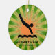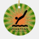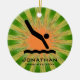 Natal personalizado do Diver no pedido 20XX. Um mergulhador em movimento contra um fundo verde e laranja de explosão. Todo texto personalizável, frente e verso!