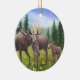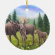 O design original das belas artes de uma família do Alasca dos alces pelo ilustrador/desenhista Carolyn McFann do estúdio de ronrom de dois gatos em um ornamento do feriado da qualidade para animais selvagens ventila.