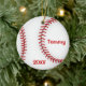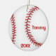 Um ornamento perfeito para o amante, o treinador ou o jogador do basebol. Ornamento cerâmico com design do basebol na parte dianteira e na parte traseira. Personalize com vazio da licença do nome e da data.
