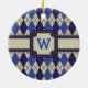 Argyle vai de 8 bits com este esquema de cores azul-marinho, azul-denim e khaki com um ponto de contraste marrom rico criando uma aparência perfeita para amantes deste padrão clássico. Personalize o monograma com o inicial apropriado para um toque personalizado.