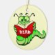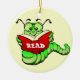 Ornamento do Bookworm com texto personalizável (no livro). A cor de fundo também pode ser personalizada: selecione personalizar, editar e criar plano de fundo.