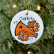 Enfeite de árvore de Natal de torta bonita. Apresentando um divertido megafone laranja e preto e design pom pom pom com fundo azul-aquarela. Personalize com seu nome e ano. Dons de excelente e guardar para Cheerleaderes, Equipes de Animação e Treinadores. Mais Designs e cores disponíveis no meu compro.