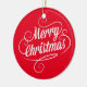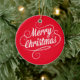 Este ornamento com texto branco alegre do Feliz Natal no vermelho é perfeito para a decoração do feriado.