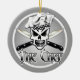 Comemore a estação do Natal junto com sua paixão feroz para cozinhar com este ornamento da árvore de Natal do cozinheiro chefe do crânio do assassino, autorizada o cozinheiro chefe. A cor do fundo pode ser mudada a um do seus bem escolhidos, usando a ferramenta da personalização de Zazzle. Visite www.zazzle.com/thechefshoppe para ver mais grandes crânios temáticos culinários. Grandes presentes para o cozinheiro chefe principal, o cozinheiro chefe sous, o cozinheiro chefe de pastelaria, a linha cozinheiro, o formando culinário ou o qualquer um com uma paixão feroz para cozinhar!