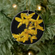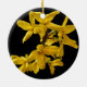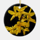 Os ornamen deste feriado caracterizam flores amarelas douradas do forsythia em um fundo preto puro. Os Forsythias são um dos arbustos de florescência os mais adiantados no primavera. Quando as mostras desta flor suas pétalas brilhantes do ouro no jardim, nós souberem que o inverno está ido por um outro ano.