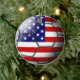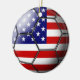 Bandeira dos Estados Unidos da América gravados através de uma bola de futebol em um ornamento cerâmico frente e verso.