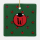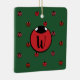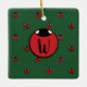 Quatro tipos de joias; sete pontas, duas pontas, rosa e asiático; façam um padrão de bolinhas sobre um fundo verde. Também chamados de pássaros-panela ou besouros-dama, esses insetos protegem fazendas e jardins contra pragas, particularmente pulgões. Personalize o monograma deste ornamento com a sua inicial para torná-lo exclusivo.