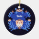 Bubu e lua, porco guineense e flores azuis, ornamento personalizado. Personalize-o com o seu próprio texto!