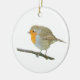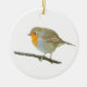 Ornamento com a foto do pisco de peito vermelho europeu (rubecula do Erithacus) que empoleira-se em um ramo fino