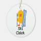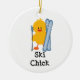 Um pintinho amarelo bonito guardara um par de esquis e de pólos azuis em t-shirt do pintinho do esqui, em camisetas, em etiquetas, em canecas e em mais presentes todo o esquiador que amar bater as inclinações para o divertimento ou o esporte.