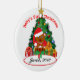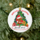 Ornamento todo do primeiro Natal do "bebê PERSONALIZADO" você tem que fazer para fazer enfeites de natal que do primeiro Natal deste "bebê original" seu é adiciona um nome e um ano. Caracteriza belamente um encantamento e uma árvore de Natal inteiramente decorada com presentes e um urso de ursinho especial do Natal assentado sobre um presente - e diretamente acima de onde você colocará o nome e o ano da sua criança do primeiro Natal.