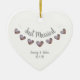 Recem casados roxo e ornamento de pearl. Os nomes e a data de casamento mostrados podem ser personalizados para os do marido da esposa. Um bonito presente de casamento para a família ou os amigos darem novos amigos.
