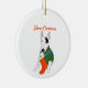 Rex em seu suéter de Natal com sua meia é a adição perfeita para sua árvore de férias