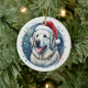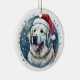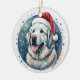 Pirenéus Excelentes Fluffy, planos, Enfeites de natal redondo com chapéu de Santa.