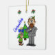 Aqui está um ornamento chrismukkah caprichoso que mostra um judeu com o Holly no seu punhal e confundido sobre a sua cabeça. Um dos Papais noeis está trazendo um presente de Natal para ele. Nas costas, personalize isso com o ano atual ou um nome de família? Desenhado por Sheila Cicchi, Brownielocks.com, Todos os Direitos Reservados.