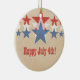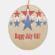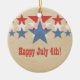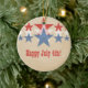 Diversão e na moda Red, White e Blue Star Independence Day Ornament apresentando um fundo de papel texturizado falso e linhas descendentes de estrelas vermelha, branca e azul. Este ornamento único é uma maneira perfeita de mostrar seu orgulho americano em 4 de julho! Fácil de personalizar, basta adicionar seu próprio texto no espaço fornecido. Esta design é também excelente para o Dia do Memorial como uma maravilhosa manutenção ou decoração!