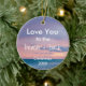 Este ornamento, desenhado por Viagens estéticos, apresenta um adorável fundo oceânico com as palavras "Ame-te à praia e às costas". Use a modelo para alterar a mensagem ou o botão "personalizá-la" para alterar fontes e cores ou torná-la sua. Verifique se há itens correspondentes no nosso compro. Foto tirada em Pensacola, Flórida.