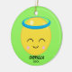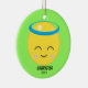 Junte-se à loucura emoji! Personalize este ornamento com seu nome ou dê como presente. Tem um fundo brilhante verde limão com um rosto sorridente e olhos fechados com um halo emoji. Perfeito para aquele anjo na sua vida! Veja os muitos outros enfeites que oferecemos em nossa loja.