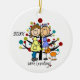 Um ornamento cerâmico bonito, do divertimento do Natal do feriado que caracterizam uma figura mães expectantes casal da vara, um gato alaranjado, uma árvore do feriado, e um texto que nos leia "estão esperando!" com uma área você pode adicionar o ano em curso!