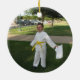 Grandes enfeites de natal das artes marciais para o lutador que você sabe. A parte dianteira caracteriza uma silhueta de um karaté retrocede dentro o branco em um fundo roxo. Abaixo do desenho é um espaço feito sob encomenda por um nome e um ano. A parte traseira tem um espaço para uma fotografia feita sob encomenda de sua escolha.