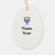 Este é um ornamento Chrismukkah para uma família ou apenas uma pessoa. A frente apresenta uma mistura de imagens/símbolos judeus e tradicionais de Natal, como conhaque, árvore de Natal, elfos, um judeu vestindo um Kippah, com uma cana doce no bolso e um sonho à sua frente. No verso você pode colocar o nome próprio de uma pessoa ou um sobrenome (Nome da família) e depois o ano. Desenhado por Sheila Cicchi, Brownielocks.com. Todos os Direitos Reservados.