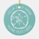Ornamento feito sob encomenda da árvore do dólar de areia do Natal em julho. Design do escudo da praia do vintage com tipografia rústica. Adicione seus próprios cumprimento, citações engraçadas, ideia bonito do presente do nome de família etc. para amigos, família, decoração sanddollar do xmas do seashell do verão do noivado etc. Inclui a corda sparkly do ouro. Boas festas!