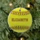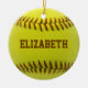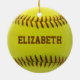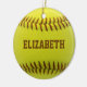 Bola feita sob encomenda do amarelo do ornamento da bola do softball com texto que marrom você pode personalizar com seu próprio nome. Presente perfeito ao jogador de softball
