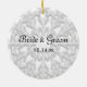 Personalize o ornamento elegante da foto do casamento no inverno do floco de neve com os nomes pessoais dos noivos, da data de suas núpcias e da imagem. Criar umas economias feitas sob encomenda do casamento no inverno o ornamento da data, o presente de casamento da lembrança ou o presente personalizado do chá. Este de um ornamento invernal feito sob encomenda amável do casamento caracteriza um design branco intrincado do floco de neve e é perfeito por um dezembro elegante, tema do casamento no inverno dos janeiro ou fevereiro.