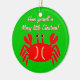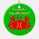 Dê a pouco elogio do Natal esta época natalícia com nossos enfeites de natal felizes do caranguejo. Um caranguejo vermelho pequeno feliz com o cumprimento, "tem você mesmo um alegre pouco Natal" na rotulação branca com destaques vermelhos atrás do texto. O fundo é um verde brilhante do Natal. Um ornamento do divertimento a indicar ou dar como um presente. Livre para personalizar toda a maneira que você gostar.