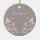 Ornamento Floral da Borboleta Doce e Deguenta, com fundo de cinza empoeirado, borboletas de rosa claro e talhos de videira floral. Este adorável ornamento floral é chique com talento feminino e faria um lindo presente decorativo! Fácil de personalizar, basta adicionar o texto personalizado de sua escolha nos campos de texto fornecidos. Clique no botão "Personalizar a TI" para encontrar opções adicionais de personalização.