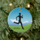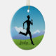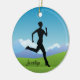 Ornamento Personalizado Jogger Corredor feminino com fundo de montanha e texto personalizável, frente e trás!