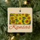 O nome do Kansas é atribuído à tribo Nativa Americana Kansa, que originalmente habitava a região. Embora o apelido oficial seja "O Estado de Girassol", Kansas também é chamado de "O Estado Livre" e "O Estado do Trigo". Em 2015, Kansas foi um dos estados agrícolas mais produtivos do país, produzindo alta produtividade de trigo, milho, sorgo e soja. A aparência mais famosa do estado na literatura foi como a casa de Dorothy Gale, a personagem principal do romance "O Maravilhoso Feiticeiro de Oz". Quando Dorothy disse, "Não há lugar como casa", ela se referia ao Kansas. A "Little House on the Prairie", de Laura Ingalls Wilder, publicada em 1935, é outra história bem conhecida sobre o Kansas. Até o Super-Homem foi dito para ir de Kansas. . da cidade fictícia de Smallville. Restaurantes Pizza Hut abriram sua primeira localização em Wichita, Kansas. O girassol glorioso é a flor oficial do estado, e é tanto uma cultura quanto uma ornamental. Os girassóis são nativos das Américas. Historicamente, foram usados para medicina, coloração, comida e petróleo. No palco da raiz, os girassóis exibem um traço único chamado heliotropismo, com o qual a raiz do girassol encara o sol em todos os momentos ao longo do dia, começando o dia virado para leste e terminando virado para oeste. Nem todas as pétalas de girassol são amarelas. Há mais de 60 variedades de girassóis que vivem no mundo — algumas dessas variedades têm pétalas listradas. Alguns girassóis também têm diferentes tons interiores. Este espetacular design homenageia o nosso belo 34º estado, bem como a flor espantosa que ele honra. Um esboço do estado está cheio de lindos girassóis. Isto é emparelhado com a laranja-abóbora "Kansas" e, com um nó no seu solo fértil, ancorado com um profundo "Estado de girassol" nesta adorável ornamentação. Quer você esteja decorando uma árvore de férias com memórias de seus viagens ou homenageando nosso 34º estado, este maravilhoso ornamento é uma excelente escolha.
