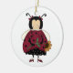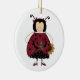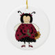 Um adorável ornamento redondo com uma trabalho de arte primitiva de campo adorável de um personagem de joaninha segurando um girassol. Excelente ornamento da árvore de Natal que qualquer amante de joaninha vai gostar.