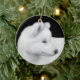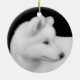 A pintura original de um cão branco macio do Samoyed pelo artista Carolyn McFann do estúdio de ronrom de dois gatos imprimiu em um ornamento do feriado da qualidade para tudo que ama cães.