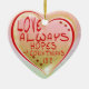 1 CORINTHIANS 13:7 AMOR SEMPRE ESPERA - ornamento em forma de coração - colecionar todos os corações nesta série - parte do maior verso Bíblia sobre o Amor. 1 Corinthians 13:4 - 8 4 O amor é paciente, o amor é gentil. Não inveja, não se vangloria, não se orgulha. 5 Não desonra os outros, não se procura por si próprio, não se aborrece facilmente, não mantém qualquer registro de erros. 6 O amor não se encanta na mau, mas se regozija com a verdade. 7 Sempre protege, sempre confia, sempre deposita esperanças, sempre persevera. 8 O amor nunca falha.