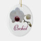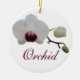 Este deslumbrante floresce é uma Orquídea de Phalaenopse com um "lábio" vermelho. As orquídeas são plantas verdadeiramente fascinantes; um dos sabores e fragrâncias favoritos do mundo vem de uma orquídea: a baunilha. O feijão baunilha é, na verdade, uma vagem de sementes de orquídea e as raspagens da dentro do feijão, muitas vezes usadas em sorvetes e em cozinheiros, são na verdade milhões e milhões de sementes de orquídea. Há também muitas histórias, mitos e lendas relacionadas às orquídeas. O nome "orquídea" vem da palavra grega "orquis" que significa (de todas as coisas) "testículo". A lenda da Orquestra, que era filho de uma ninfa e de um santo, acabou mal (como sempre parecem). Sua morte foi particularmente horrível, enquanto ele foi dilacerado. Seu pai implorou aos deuses que devolvessem seu filho a ele; eles recusaram. Mas lhe ofereceram alguma consolação à medida que os restos se tornavam orquídeas. Este espantoso florescimento é oferecido aqui neste lindo ornamento. O design é espelhado no reverso do ornamento. Você é bem-vindo para substituir o design e/ou texto espelhado por sua própria mensagem ou sentimento.