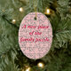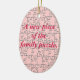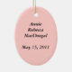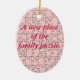 Ornamento oval cor-de-rosa para comemorar o nascimento/adopção do membro fêmea novo da família. Partes da serra de vaivém com texto "uma parte nova do quebra-cabeça da família." No verso personalize com nome da criança e data do nascimento/adopção, etc.=