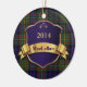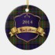O ornamento cerâmico colorido de xadrez, com o padrão tradicional de xadrez tartã MacLellan, verde, vermelho, preto, amarelo, roxo, como fundo. Gráficos de um escudo de tom roxo e dourado como uma placa, tem texto roxo e ouro amarelo personalizado pronto para personalizar. Ornamento excelente. Faz um enfeite e decoração de presente de excelente para outros usos na casa.