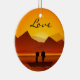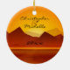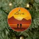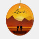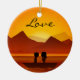 Enfeites de natal Personalizado de Casal Silhuette de Cartoon Personalizado, Barco LOVE. Possui um fundo de montanha e sol.