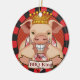 Ornamento personalizado do Rei Porco, roupa de CHURRASCO, t-shirts barbeque, presentes de biscoito pela Ilustração ArtMuvz. Alavão de CHURRASCO, camiseta, roupa barbeque. presentes de biscoito e roupa de piquenique de barbeque de churrasco. Para personalizar, adicione seu nome ou adicione texto. Personalize este ornamento de churrasco barbeque para torná-lo exclusivo seu ou para dar como presente personalizado